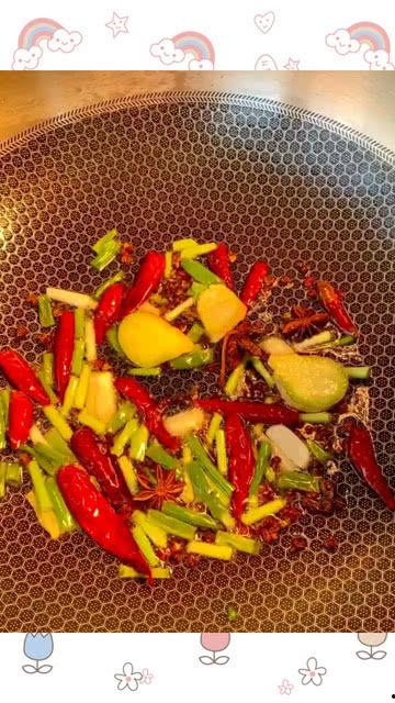 4. 加调料:加入豆瓣酱、辣椒、花椒等调料,继续翻炒。